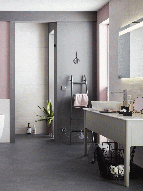Hochwertige keramische Designfliesen in trendigen Beton- oder Natursteinoptiken haben auch in Küchen und Bädern wachsenden Zulauf.